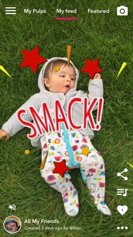 It has a number of Snapchat-style animations, which it calls “live video filters”. These include light effects, animated backgrounds, and memes. Once finished, just bundle the video, and upload it to the Pulp community.